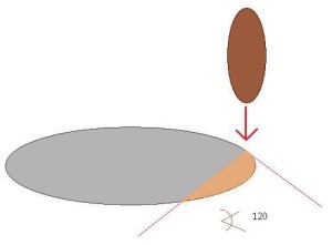 Kā atskaldīšanas rīks jāizmanto tādas pašas cietības vai cietāks olis. Ja mūsu izejmateriāls ir konsistents un monolīts, tad trieciena spēks tajā izplatās noteiktā veidā. Izmantojot akmens fiziskās īpašības, ir iespējams panākt konsistentus atskaldīšanas rezultātus. Kad mēs ar savu atskaldīšanas rīku (oli) veicam sitienu pa izejmateriālu (akmeni), trieciena spēks izejmateriālā izplatās konusveidīgi (skat.diagrammu). Pie tam leņķis vienmēr ir 120°.