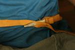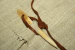 Izmēģinot dažādas iespējamās stiprinājuma variācijas, tika secināts, ka visefektīvāk apģērbu iespējams aizdarīt ar rotadatu, kurai caur tās galu izvērta cilpa, jo āda ir elastīga un nedaudz stiepjas, kas ļauj izveidot vairākas cilpas apmetot ādas sloksnīti adatas abiem galiem vairākkārt, kas neļauj apģērbam atvērties, kā arī nedeformē pašu sējumu. Vairums dalībnieku izmantoja auklu, kas savā starpā sasieta (veidojot noslēgtu apli), rezultātā veidojot dažādas pašsavelkošas cilpas variācijas, kas pilnībā novērsa adatas izslīdēšanu un nejaušu pazušanu. Tas ļauj arī rotadatu ātri noņemt, jo šādā veidā nav nepieciešams siet dažādus mezglus.