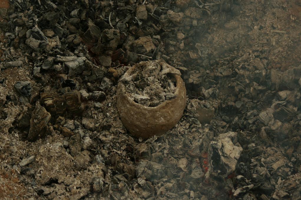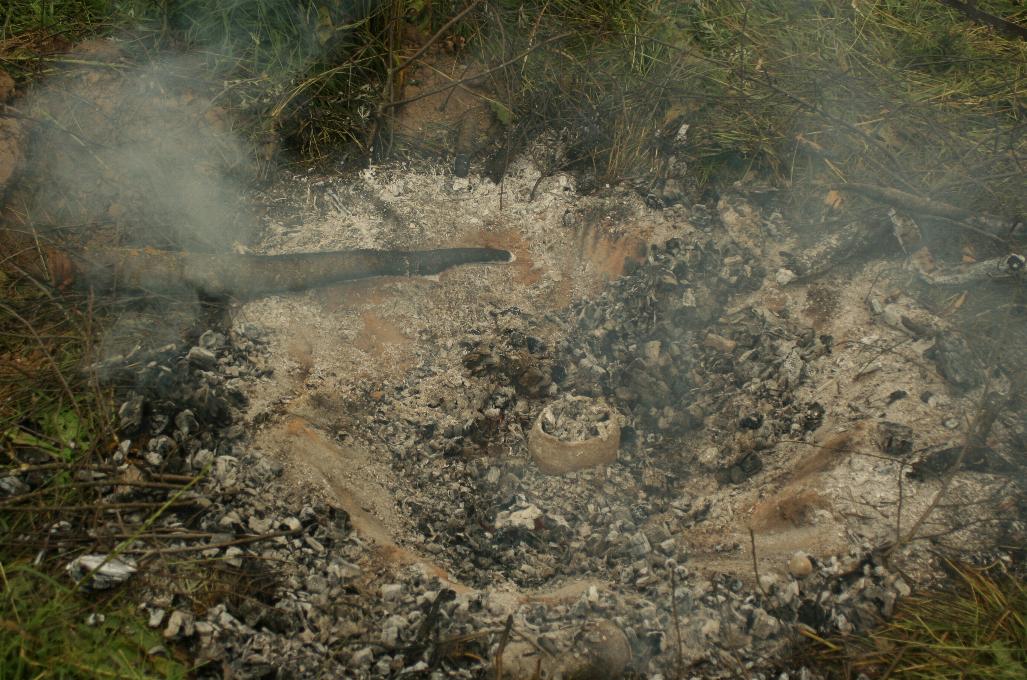 Šī gada jūlija sākumā notika kārtējais māla izstrādājumu apdedzināšanas pasākums. Vairāku gadu pieredzes rezultātā tika nolemts izmēģināt samērā ātru apdedzināšanu – veltot tai aptuveni sešas stundas intensīvā ugunī. Apdedzināti tika vairāki bezripas māla trauki (švīkātās keramikas atdarinājumi), gan bronzas, gan dzelzs laikmetam (bļodveida un bumbierveida) raksturīgu formu tīģeļi krāsaino metālu kausēšanai.