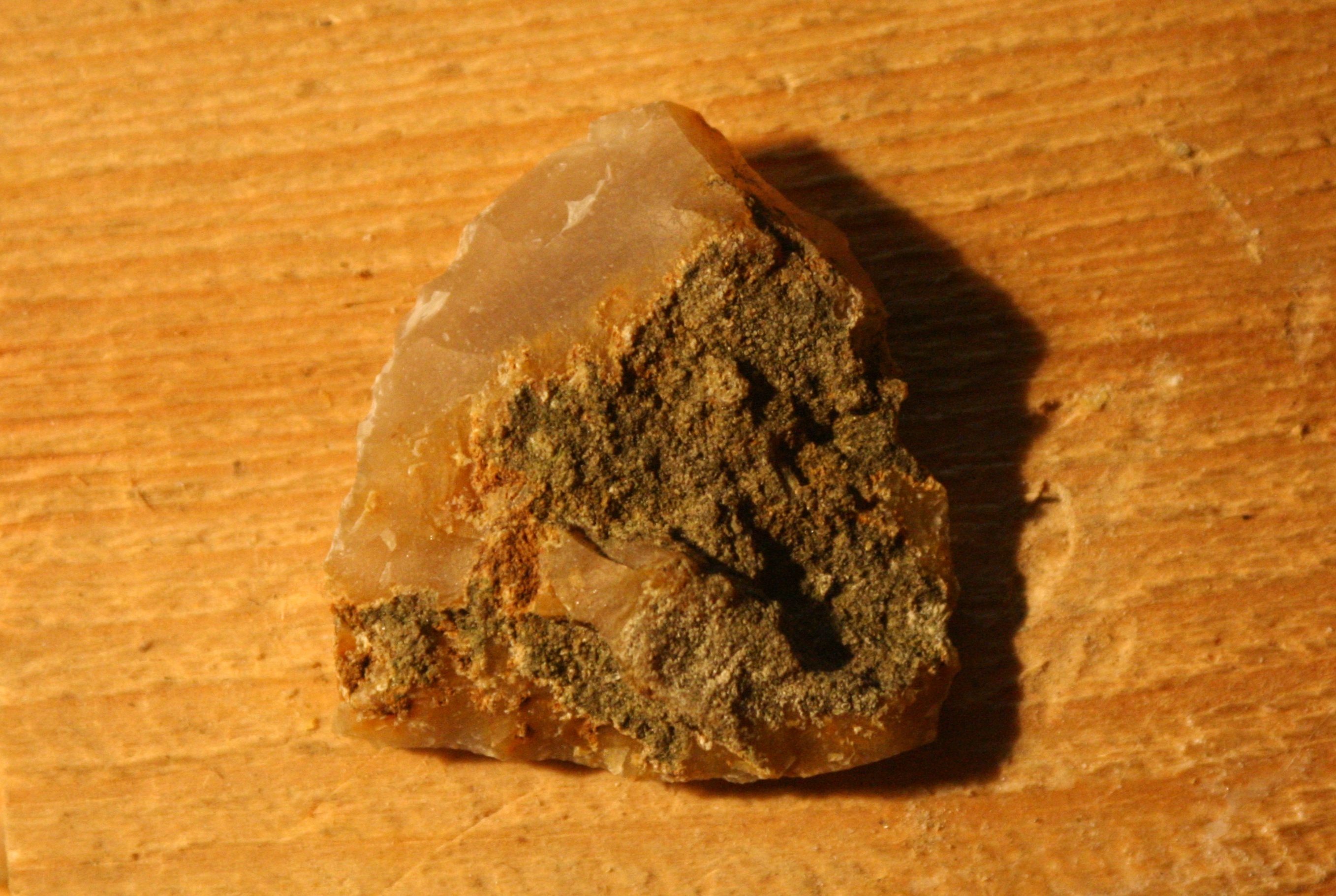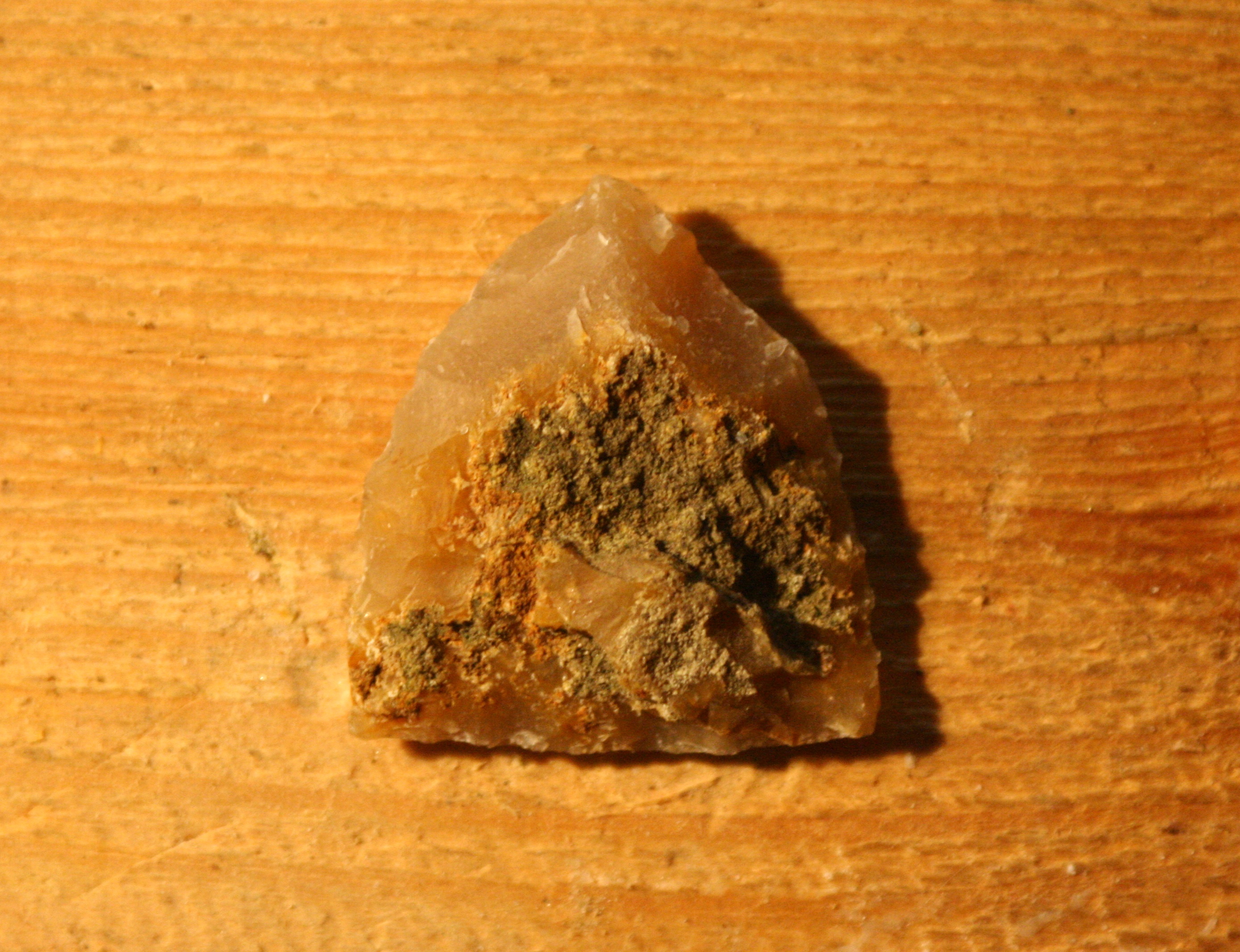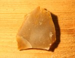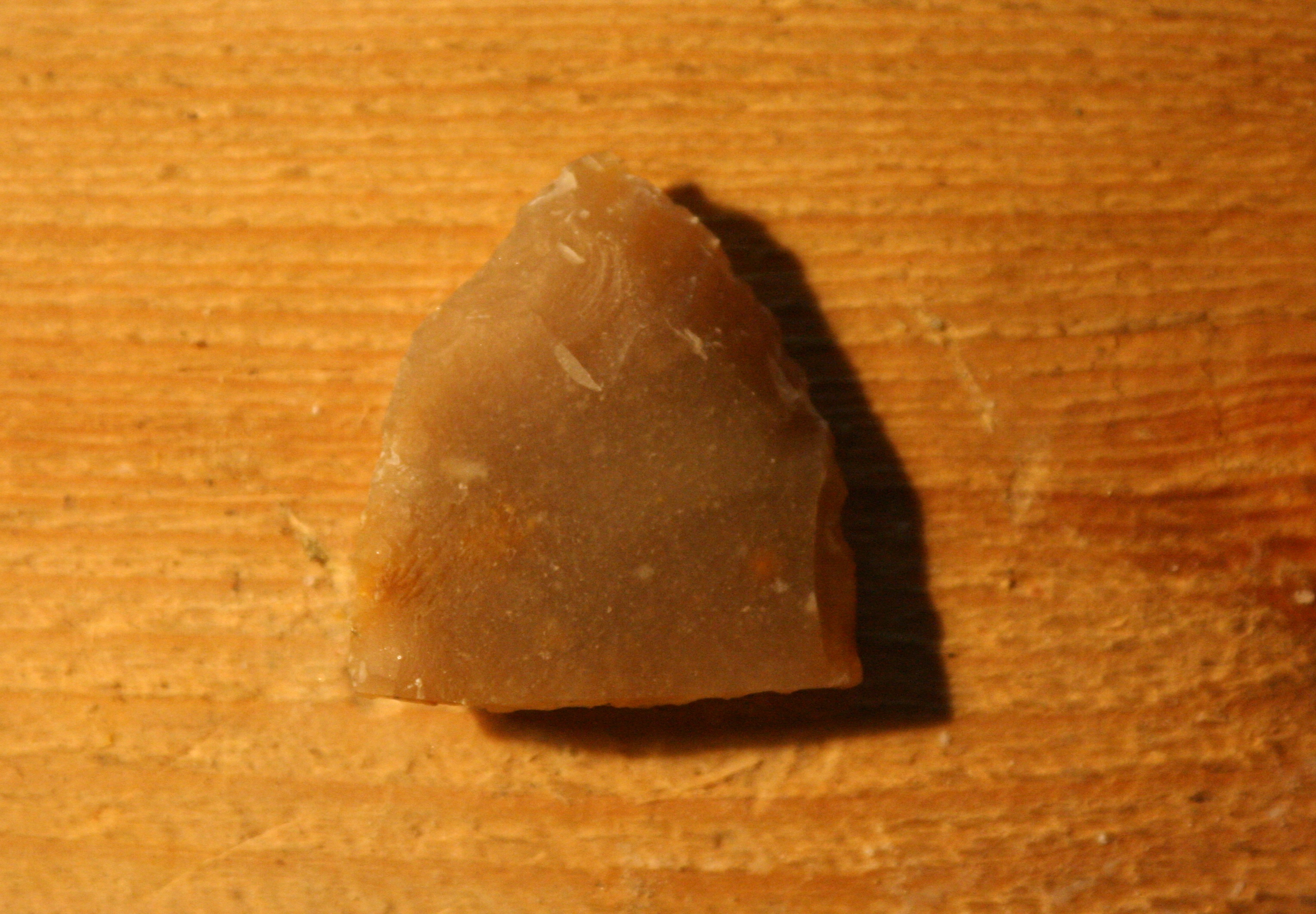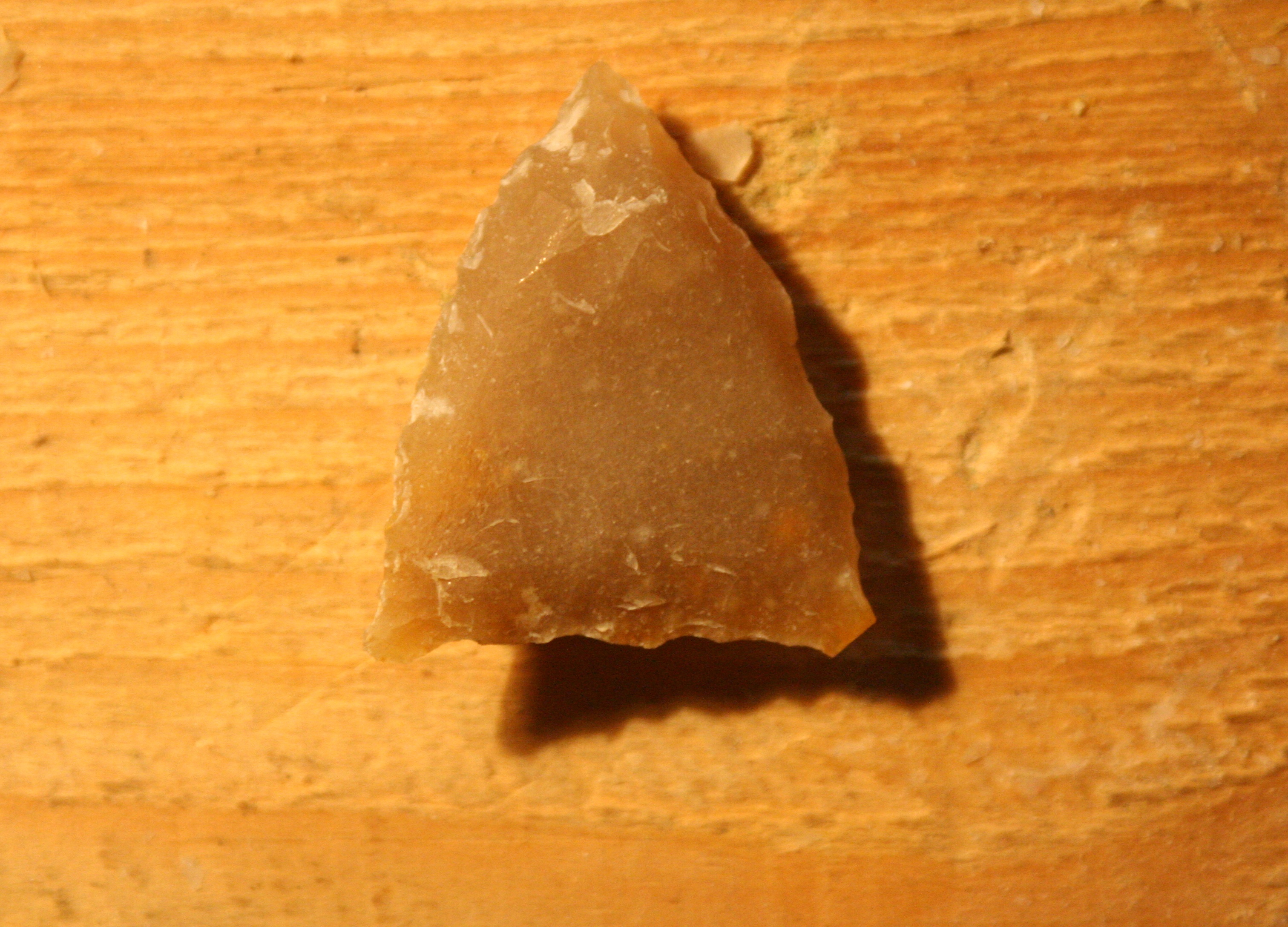 Pagājušā gada jūlijā kādā arheologu pasākumā vienā no tuvākajām kaimiņzemēm bija iespēja sastapt kādu tālās franču zemes pārstāvi, kurš gadu desmitiem nodarbojas ar akmens laikmeta iedzīvināšanu un ir uzskatāms par vienu no savas jomas labākajiem un zinošākajiem ekspertiem. Tā nu bija sanācis, ka viņa krājumā bija palikuši vairāki lieli un lieliskas kvalitātes gaiši brūnngandzeltena krama gabali, par ko liecināja to dzidrā skaņa uzsitot, kurus viņš nekādi nevēlējās vest atpakaļ, jo kāds, kam tie bija vesti, nebija vīžojis tiem ierasties pakaļ. Tā nu vārds pa vārdam un tie viens pēc otra pārceļoja mūsu primitīvistu krājumā. Lieki piebiilst, ka reģions, kur šis materiāls iegūts atrodas Francijas DA pusē bet izstrādājumi no tā tiek atrasti teju visā Rietumeiropā. Ilgs laiks pagāja, ka mēs sadūšojos tam ķerties klāt, jo tik kvalitatīvs materiāls negadās bieži. Tā nu ar lielu uzmanību tiešā “cietā” uzsitiena tehnikā no tā tika atšķeltas pirmās šķilas. Tika pamēģināts arī atskaldīt arī nažveida šķilas, kas prasītu atsevišķa rakstiņa uzmanību. Tomēr ar esošo prasmju līmeni izdevās iegūt pamatā tieši parastās šķilas, no kurām kādrez gatavoti griežņi, kasīkļi urbīši utt. Tomēr šoreiz nagi niezēja pamēģināt izgatavot ko lielāku, tādēļ izvēle atkal krita uz jau bultu galu pusi. Sekojošajos attēlos tika mēģināt nofiksēt galvenās transformācijas, kādu piedzīvoja no skata gauži parasta krama šķila, tai iegūstot jau atpazīstamas aprises.