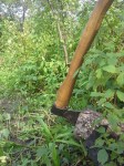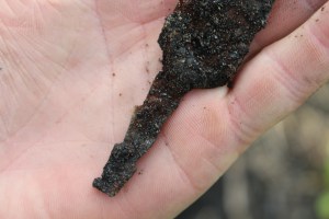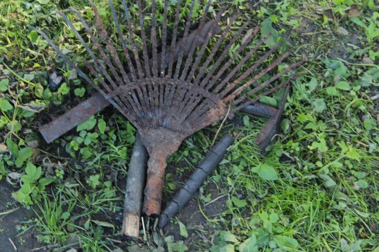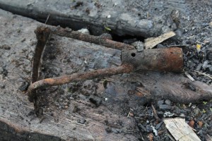 Maijā bijām attīrījuši objektu no lielajām ogļu un deguma paliekām. Starp tām atradās arī vairāki rīki – pašizgatavota plāna naža asmens, pie vienas no ēkas stūriem – neliels grābeklis. Tomēr, interesantākais sekoja jūnija vidū, kad no ēkas apakšas pamazām atsedzas vesels darbarīku komplekts, ko uguns bija skārusi samērā maz. Tur bija gan lāpsta, grābeklis, āmurs, cirvītis un arī, lai cik ironiski un simboliski nebūtu, viens no arheologa pamatrīkiem – ‘kāpostene’ :)