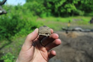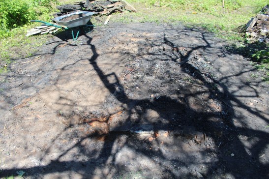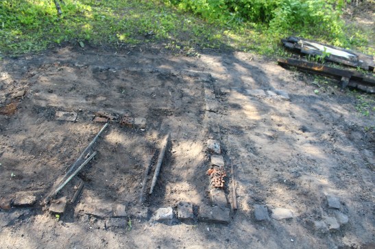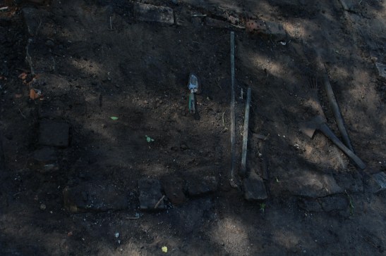 Jūnija sākumā novācām zemes gabala centrā esošos nodegušās būdiņas pamatus. Esot arheoloģijas apritē, joprojām darba procesā bija ļoti interesanti vērot pašam sevi mazliet abstrahēti – vācot gruvešus vienlaikus vērojot sevi it kā no malas, ko darītu, ko pamanītu, kam pievērstu vairāk uzmanības, ja šis būtu īsts arheoloģijas piemineklis, ko fiksētu, ko nē. No otras puses, pamatojums šādai treniņlietai nebūt nav tālu jāmeklē – galu galā arheoloģija ir tik līdzīga kriminālistikai, tikai pētījuma objekts atšķiras hronoloģiski. Galu galā, šur un tur pasaulē ir iespējams iegūt arī pat akadēmisku grādu tieši šādā specializācijā.