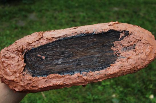 Koka trauku gatavošana ar izdedzināšanas metodi. 2015. gada 15. jūlijs.
