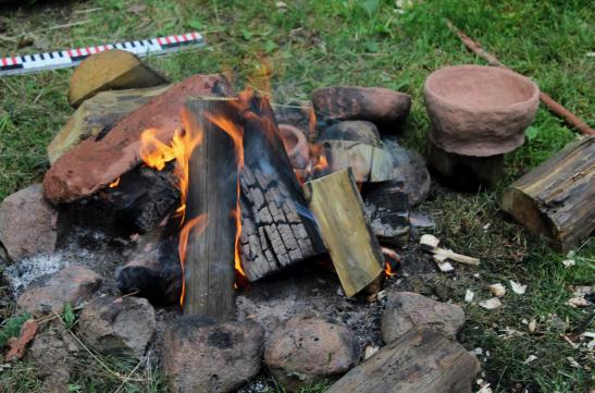 Koka trauku gatavošana ar izdedzināšanas metodi. 2015. gada 15. jūlijs.