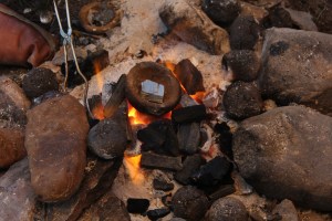 Vasaras skolas noslēgumā par spīti lietainajam nedēļas sākumam notika bronzas liešana, neliels kremācijas – seno rietumbaltu ugunskapu – simulācijas eksperiments un keramikas apdedzināšanas pasākums.